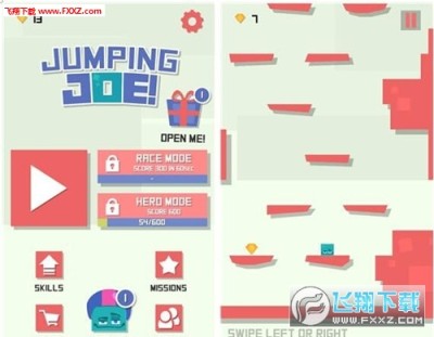 跳跃吧乔伊(Jumping Joe)手游安卓版游戏中玩家只需要点击屏幕下方左右两个位置就可以操控人物向对应方向跳跃,每一次跳跃会上升一层;滑动操作其实就是用左右滑动来实现方向性跳跃,就个人而言觉得滑动操作方式会更舒服一些。这里并没有关卡一说,挑战开始之后地底下的岩浆不由分说直接涌了上来,为了保命你不得不向上跳跃,其实这样的设定在很多跳跃游戏中都有运用。