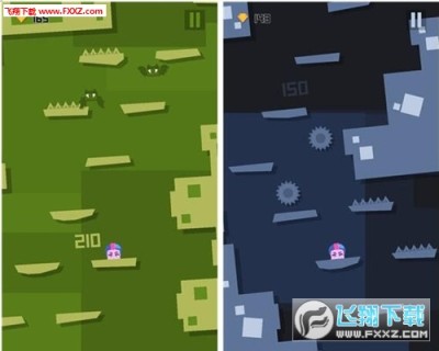 2、玩法简单,玩家可以不停的向上跳跃,躲避障碍,获得高分;