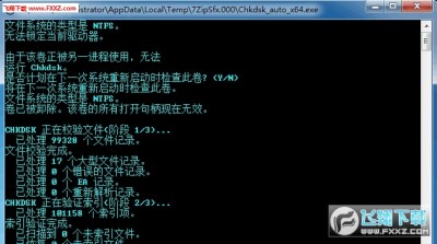3.在修复卷(或者在检查没有 Windows Server 2003 SP1 的计算机上的卷)时,chkdsk 会将卷锁定,使存储在该卷上的任何数据都不可用,直到 chkdsk 完成。一般来讲,只能在已知已经损坏的卷上运行 chkdsk。在标记为“脏”的卷上,Windows 在计算机重新启动时将自动运行 chkdsk。