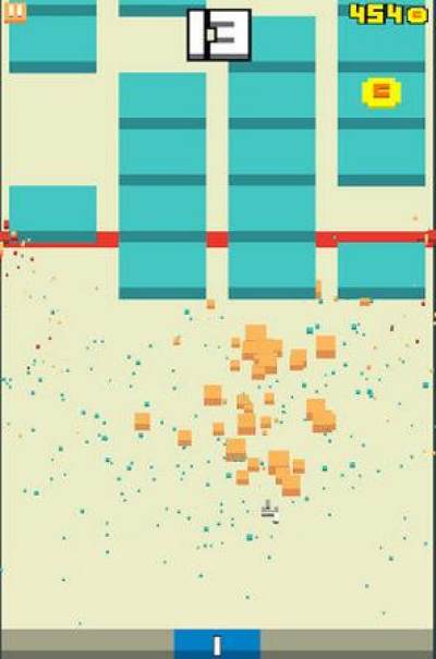 游戏的操作很简单,砖块暴走的路径被分为了4条道路,在对应道路的屏幕下方点击后向上划动就能发射砖块啦。游戏以竖屏视角展开,刚刚上手游戏时非常有俄罗斯方块的既视感。不同的是,本作中的方块是从下方往上冲击,玩家需要眼疾手快的找到每一行的空缺处,把他填充完整进行消除。当上方的砖块落到屏幕底端,游戏就结束了。听上去很简单,玩家来还是非常考验玩家们的手速和即时反应能力的。
