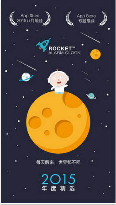 ·全球最具设计和趣味的火箭闹钟, 融合了iPhone内置的加速计、重力计、摄像头,以及麦克风来增加交互的趣味性,残忍又小清新,你需要疯狂摇晃手机,解答极其可怕的数学题,还要完成对着手机微笑和吹气等各种任务才能关闭闹铃!