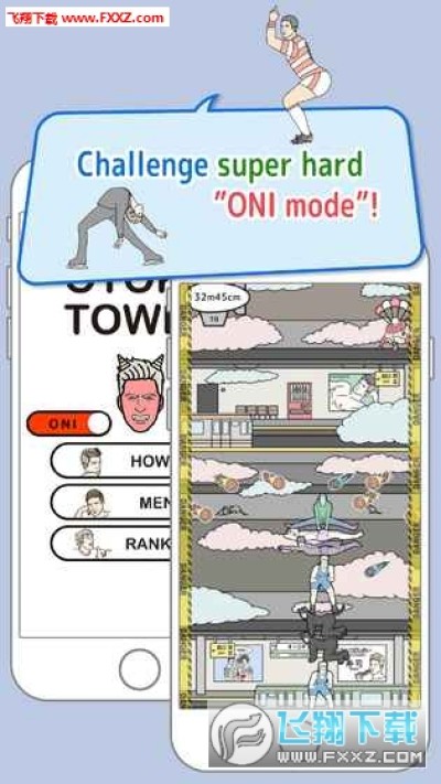 Otoko Tower 是一款男性角色堆砌小游戏。很多堆砌类游戏的挑战点在于堆砌的物体下路速度非常快,但 Otoko Tower 最难的地方其实是,你要将姿势各异的男人们稳稳当当地叠起来。还要不时分神去把来破坏「塔」的平衡的陨石、UFO、乌鸦、鬼魂赶走。