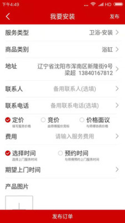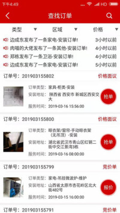 3、用户可以通过淘安装app发布安装维修任务,然后把这个任务推送给师傅,师傅可以进行接单服务。