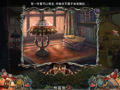 本游戏依然具有三种不同的难度模式,下面状态栏和扇子形态也有了明显的更换。同样在本作中可以使用收集到的金币购买一些物品,另外的找物场景也不是很难。总体感觉比前两部更好了一些。除了在HO场景,在普通场景下也可以收集用来提示的扇子。与之相对,左面是金币数目,右面是还可以连续使用的提示数目,数字变大了一些,看上去更加清晰,这是和前作相比较大的改善。看上去真有鬼魂之谜系列的样子。本作提示恢复速度较快,里面的小游戏也比较简单,很有新意。BETA版容量不太大,也许是和狼影迷踪3接近的,虽然容量不大但是内容却很丰富,画面也很美观。