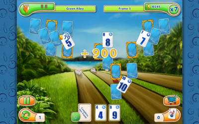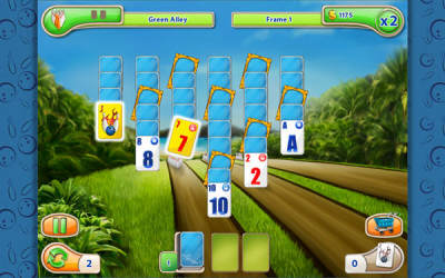 画面明朗清爽的一款纸牌游戏,游戏以绿色环绕的户外保龄球运动为背景,采用经典的纸牌接龙匹配消除的玩法,将充满运动元素的保龄球和纸牌结合在一起,玩起来十分轻松愉快。