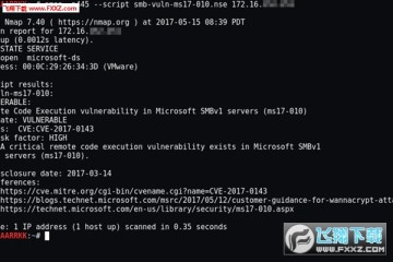 步骤也很简单,首先下载nmap.exe(官方最新版下载页面)并安裝;然后将smb-vuln-ms17-010.nse放到nmap\script目录下;最后键入:nmap -p 445 --script smb-vuln-ms17-010 ip-range执行扫描。