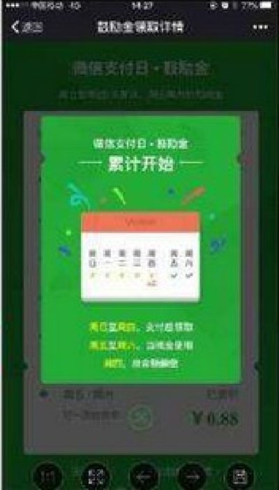 微信鼓励金微信支付鼓励金计划活动!即日起在合作门店使用微信支付消费满2元,即可领取一笔随机金额的鼓励金,最高888元!