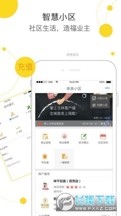 4)提供小区物业报修、投诉建议、号码通、物业缴费、周边商户查询服务