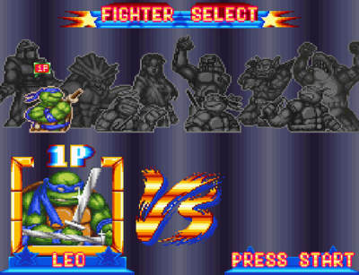 之后在SFC上这款忍者神龟5也出现了,与FC上的格斗不同的是人物多了很陡,而且平衡性也有了比较高的改动。