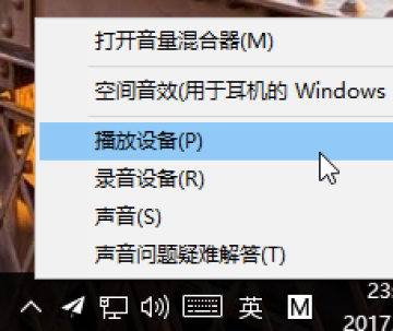 用鼠标右键点击屏幕右下角的音量图标,就可以看到「空间音效」,其实就是这个了。不过我们可以有个更好的设置,点击「播放设备」。