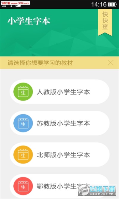1. 小学生字本分别收录了人教版、苏教版、北师版、鄂教版课本的生字,可根据不同教材、不同年级选择相应的学习内容;