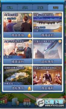 2、 任务:前期的引导任务,这里注意以下几个地方,第一、引导任务中的宣传、培训,电脑让你用的是每天免费的机会,这里有点坑,建议自己手动选一下手G币的选项,因为每天免费机会的奖励都非常高,等商铺和人员数量上来以后再使用!第二、股票引导任务一定要做,不然你买不了股票,但是股票引导任务别买多了只买1份股票不是500份,后期到20级后再买股票。(顺便说一句买股票只买股票界面中你能买的最后那一只股票,因为那一只的高低差最大,挣钱最多也最容易)。第三、公共建筑的任务不建议做,我到35级依然是一个公共建筑并且没升级,建筑物卡等有商会后捐献给商会(限于首冲屌丝,土豪玩家随意)。