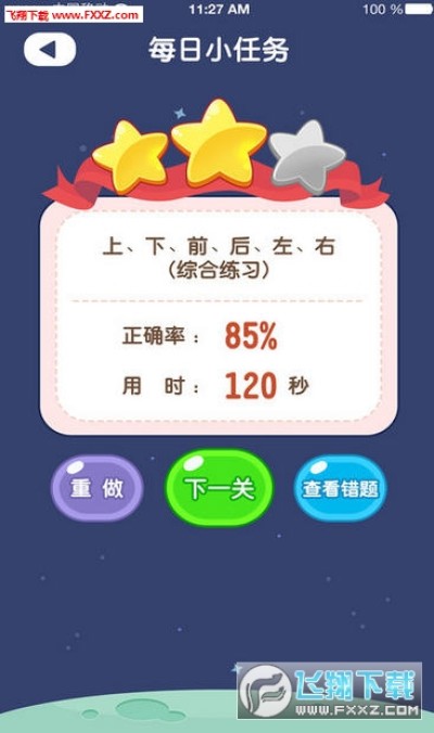 每一关挑战完成后,我们会根据孩子的成绩给出相应的奖励,每关最高可以达到3星哦!如果在做的过程中产生了错题,还能随时查看错题情况呢!