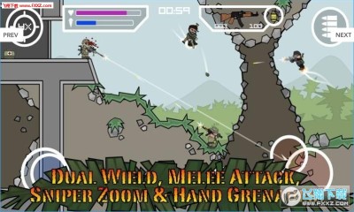 《涂鸦军团2 Doodle Army 2:Mini Militia》是一款永无休止的涂鸦风格射击类型游戏,游戏中无限的射击你的敌人。绝对爽快的手感,放松地享受战斗。自定义你角色的外观,蓝波、拉灯、天线宝宝等。多人通过游戏中心在线游戏,通过蓝牙无线实现多人游戏模式。卡通风格,摇杆与触屏结合控制,移动射击,还能投掷手榴弹。游戏关卡已全部解锁。喜欢这款射击游戏吗?快点入手吧!