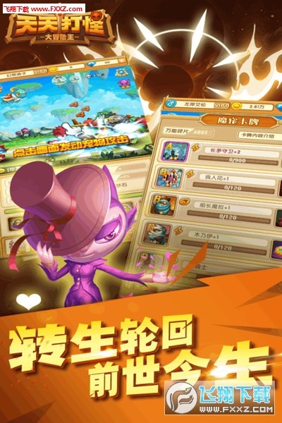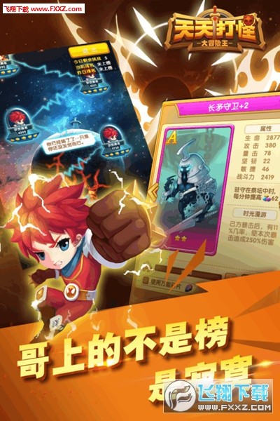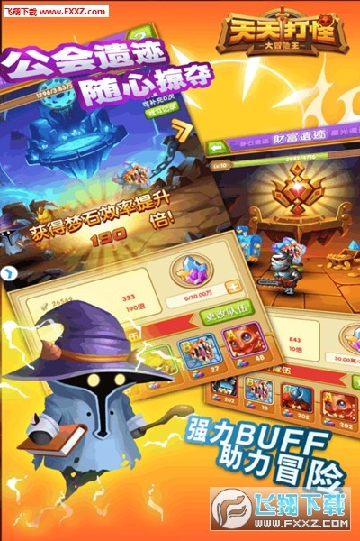 创新轻冒险手游《天天打怪》游戏主打手控点击、多线养成、卡牌收集四大特色。突破传统束缚融于 点击竞技的概念,切实感受“杀怪”的爽快感,摆脱观看式的窘境。神秘冒险的BOSS战,惊艳全服 的遗失圣物,即使下线退出游戏也不!会!停!疯狂点击与轻松放置由你来选择,为自由而战,冒险 之旅即将开始。