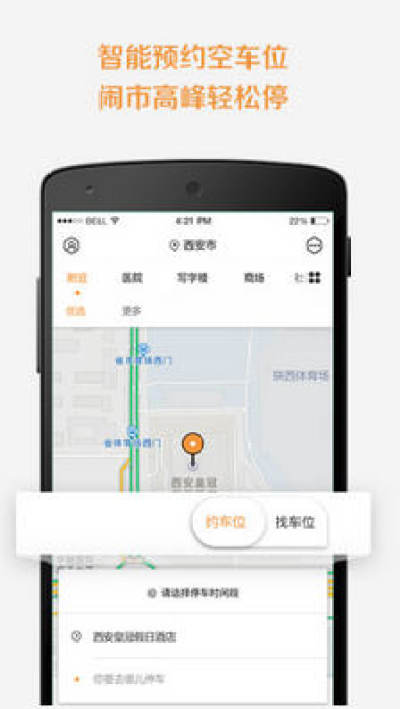 悠车位APP,依托物联网、云计算技术、无线通信技术、计算机网络技术等技术开发出“预约车位”模式,让用户可以在任意时间预约车位,保证用户在需要时能立即找到车位停放使用,特别是高峰期时,能为用户节省很多时间和精力,高效便捷。用户只需打开APP使用“预约”功能,确定目的地,选择进场时间和出场时间,系统就会为用户智能匹配最近的停车位并实现预留。