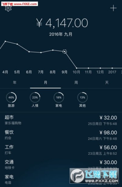 给每月支出设个预警线,一旦有超支的趋势,5coins就会发出警告,给你颜色看哦。
