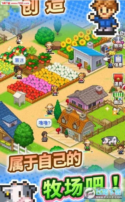 像素牧场物语是由知名厂商开罗推出的一款像素模拟经营游戏,在游戏中玩家需要经营一个小牧场,在这里圈养动物,种植瓜果蔬菜,邀请客人和朋友前来游玩,来提升这里的人气和魅力值,同时玩家需要不断地扩大你的牧场,用心提升动物和农作物的等级,建立更加完善的公共措施,吸引更多游客前来完善,增加收入,同时玩家还可以参加比赛用动物、花卉和农作物,挑战“拔河”、“滚球”、“消除”等小游戏,争取赢得比赛,为你的牧场扩大名气并得到奖金,还能获得时尚的装扮帽子。
