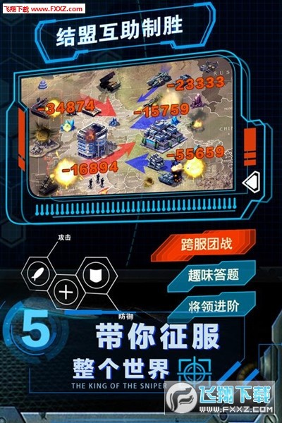 3、PVP竞技激斗、成就战场之王 游戏采用全新对战玩法,快节奏战斗让游戏体验上升,贴近真实的战争布局,无论是单人作战或军团战,都有发挥余地。