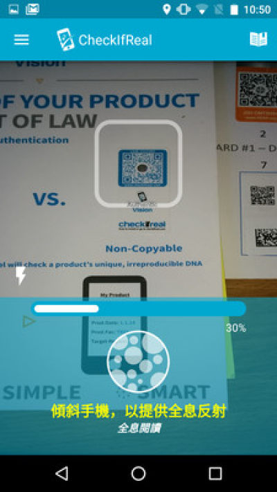 只需打开app,用扫描框对准条码进行扫描。完成后,在保持对准标签的情况下移动手机,让我们能够在不同角度拍到全息图。CheckIfReal会自动识别真伪,并告知您产品是正品还是假货。如需要,请使用app中的教程,得到更多帮助。