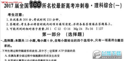 2017高考即将来临,学生们都在抓紧时间复习,小编也给大家准备了一些好的复习资料,今天带来的是2017届全国100所名校最新高考冲刺卷理综,非常不错的卷子。