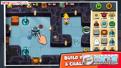 在完成一个又一个的迷宫挑战后,玩家可以提高经验、获得更多的财富,并建造自己的城堡。游戏中我们还能挑战其他的玩家,或者为他们设计充满陷阱的迷宫,并通过重播看他们是如何击败你的迷宫的。