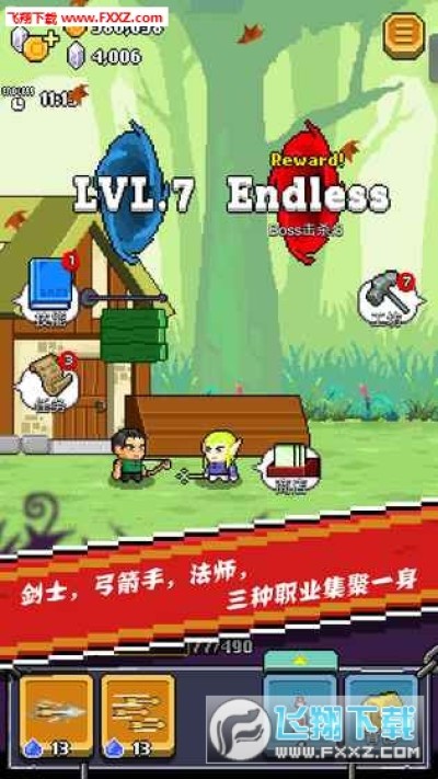 男主喜欢的公主被大魔王抓走,手持破铁剑的男主毅然出发解救公主!一路上过关斩妖,收集材料,合成装备,练就各种技能,击败无数Boss,最终成为一个全能型英雄,成功营救公主并走上人生巅峰。