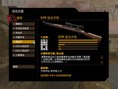 游戏中,玩家可以选择扮演不同的职业,步兵、突击、火箭弹、狙击、支援……每种职业都有自己的长处和短处,不像CS中一把M4天下无敌远射可以点,近战我扫啊扫……,二战背景使得游戏的枪械达到各自恰到好处的优势劣势,从而成为一个比CSS需要玩家配合多得多的游戏。战争时期的手雷威力巨大,小小一个铁波萝炸死四五个德军不成问题,新手更本不用担心杀不到人的问题,随手一个雷扔出去,说不定就会带来意想不到的惊喜。血肉横飞的战场、完美的物理引擎、真实的 HDR特效,能使玩家身临其境,彻底体会游戏的乐趣并感悟战争对人类的摧残,让人们为了全人类的和平,时刻不能忘记二战的历史