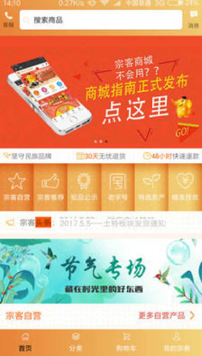 宗客商城是由日月昌股份倾力打造,专业从事源头正宗产品的推广与运营,基于自媒体环境下,大数据处理技术支持的移动互联网平台。宗客商城通过大众化参与、社会化评审、全系统智能化托管、F2C一站式服务的运营模式,聚集源头优质特产,构建经营者省心、消费者放心的新型电子商务平台