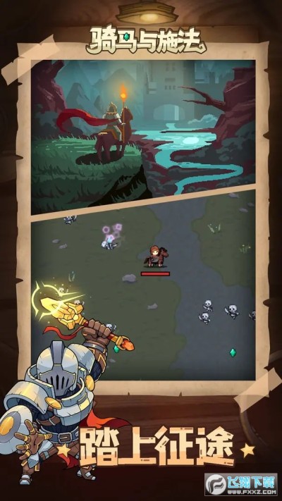 骑着骏马,在这个像素风格的世界中畅游,面对各种敌人,通过施法来战胜它们。
