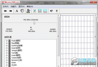 5、快捷选音:按窗口上的左右箭头按钮,以半音为单位选定音高。您也可以从画面左側的乐器一览表中直接指定您所需要的音高。