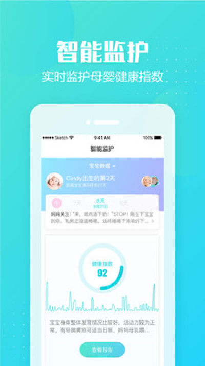 1、【智能监护】运用大数据、云计算、AI黑科技以及智能硬件的接入,深入分析和挖掘,精准测量行为变化和关联结果指导,实时在线监护母婴健康指数