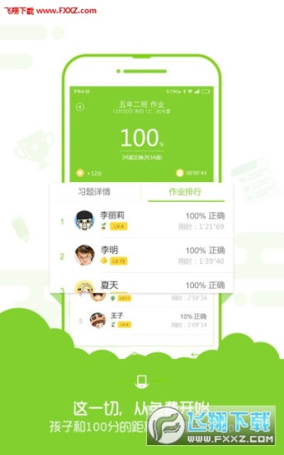 6、即时排行:随时查看自己的班级排名、学校排名、全国排名;