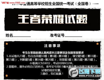 随着今年高考考试的展开,连王者荣耀高考题目答案都出来了,很多小伙伴们表示这套题光最后一套题自己就可以拿满分,选择题、判断题、作文题等题目类型,光题型就这么多,这套王者荣耀高考题可以说是非常的良心了,还有热心网友给出了一部分答案