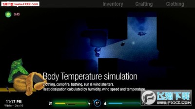 燃烧燃料,根据燃料数量,风速和湿度,火增加小洞穴的环境温度。火和取暖行为要根据现实生活的行为做出清醒的选择。