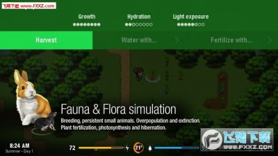鱼类和陆地动物生长繁殖,动物能怀孕,过多或被淘汰。可持续生存由你自己来决定,环境和你自身是关键。