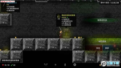 •跳跃或移动以避免陷阱,或使用盾牌减少受到的伤害。