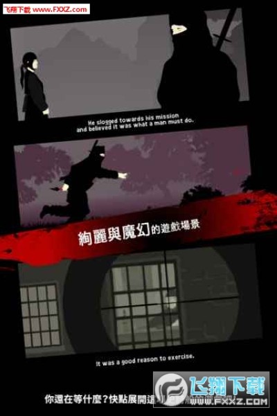 居然没什么人玩,其实这是款很不错的游戏。玩家以旁观者的姿态在游戏中聆听了3个不同的故事。游戏的控制武器飞行应该是跑酷的一个变种,不同的技能和元素丰富的地图让整场游戏的进行都饶有趣味。在这里不得不提游戏的美术设计,基本上是剪影,看起来很简单,不过有想法的人即使偷懒也让人觉得高大上。首先剪影的前后景有一定层次,这已经符合我个人对不偷懒的基本标准了(如果做不到层次感,基本会被我视为真正的偷懒)。剪影的风格导致画面都是黑灰的单调而昏暗的色彩,而血液的溅射和爆炸确是彩色的,和环境形成鲜明对比,就有了视觉上的快感。这就是我们耳熟能详的一种经典的暴力美学。不过遗憾的是,除了这以外本作就很少有运用到其它的技巧在游戏内容和动画的画面布置中了。本作的音乐音效只能说是马马虎虎,音效很少,除了风以外没有感受到别的环境音了。音乐一个场景就固定的一首,而且也没有很迎合画面上的暴力美学去把音乐变得沉闷起来,就只是用比较普通的,基本符合背景音乐。游戏对难度的把握还是比较到位的,简单难度基本上大家都能玩得过,不过有的关也要多试几次。游戏剧情的小故事中,前两个故事和主题没什么关系,只有最后一个能和主题沾上边,以至于我怀疑这游戏剧情到底有没有主题。游戏居然很强大地支持中文,这让我们可以很容易地理解剧情内容,不过默认是英文的,要看完开场动画以后去修改。另外,这游戏工作室的图标让我想到暴雪……