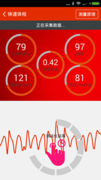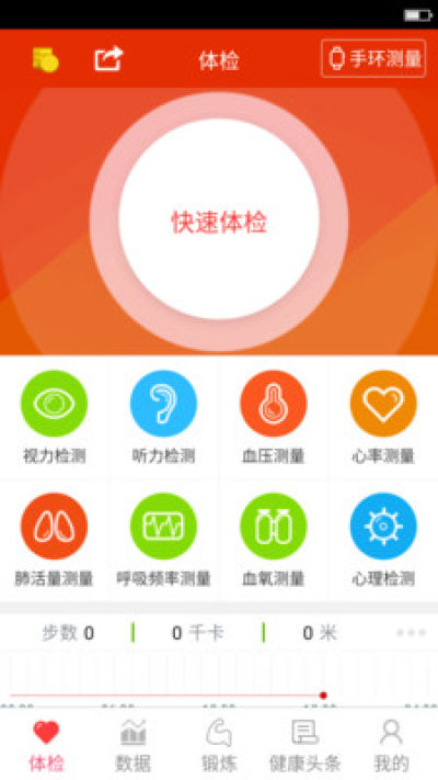 无需任何外设,体检宝直接用手机测量用户的血压、心率、视力、听力、肺活量、心理指数、色盲等身体数据,并提供有针对性的可交互的健康方案。