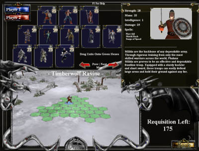 六年战争是一款战棋类的策略游戏,游戏为双方作战,在特定的地形上安排不同兵种的数目及阵型,通过策略与战术战胜对手,不同的兵种都有其各自的特点,所以安排出场的兵种和阵型需要格外小心。避免落入敌人的圈套。