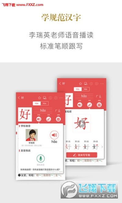 嵌入动态、静态两种标准笔顺,支持屏幕跟写;