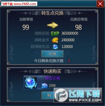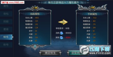 2.转生时需要消耗修为,修为可以通过消耗经验兑换或是购买修为丹来加以获得;
