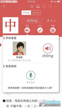 值得一提的是,这款软件还有一个重要的功能,那就是可以听取央视《新闻联播》原播音员李瑞英对每一个汉字提供了原声播读。不过,目前苹果ios系统版本每天只能免费试听两次,读者有需求可以花上40元人民币购买所需的语音服务。