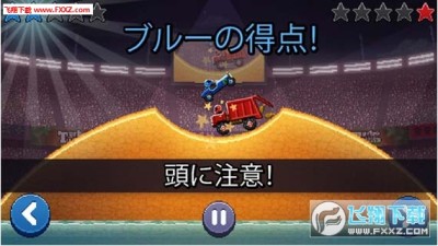游戏采用了2D横版的挑战模式,玩家们将进入一个封闭的赛场之中,驾驶自己的赛车撞向对手,谁先撞到对手的头部即获得胜利。游戏更像是游乐场里面的碰碰车的感觉,整个画面的效果像素颗粒感还是比较严重的,玩家们的车辆除了正规的F1赛车以外,更是有货车、拖拉机、铲车、中巴车等等各种类型的样式,碰撞过程也是动作不断,非常夸张的搞笑趣味。