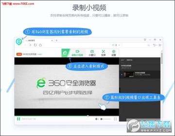 1、录制视频,安装新的360安全浏览器后,播放任意视频时,将鼠标放在视频框内,就会在视频右上角出现录制小视频选项插件提供了超清录制、高清录制、标清录制三种录制模式,还可自定义区域录制。视频录制完之后,插件还提供了简单的视频处理功能,包括裁剪、特效字幕、去水印等等,可对视频进行简单加工。