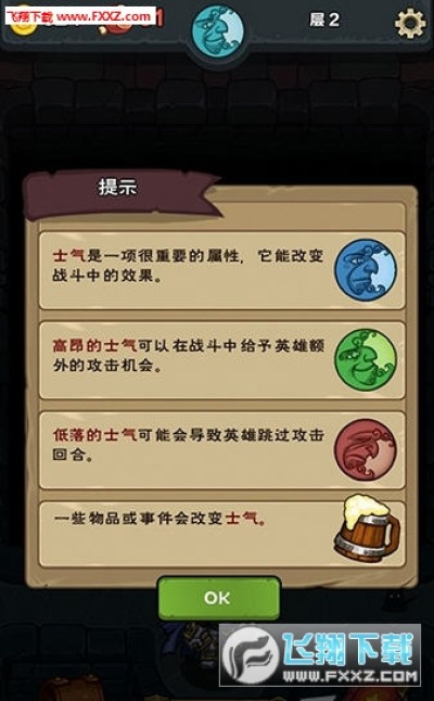 如果你决定攻击敌人,你可以观察人物下方的属性栏,然后对比怪物的攻防属性,最后决定用何种方式发动攻击。普通攻击会根据玩家的和怪物攻击值和血量值进行计算,需要注意的是普通攻击回合中怪物总是会占据先手,而用法术或者道具进行攻击,你可以避免受到怪物的伤害。当你探索地牢的时候,你需要随时留意你的生命点数,一旦生命值耗尽你必须从头开始,另外你的英雄每往下一层,需要消耗一个食物,如果他们有没有吃的,他们会慢慢地饿死(扣除生命值)。