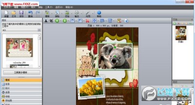 选择相片所在的目录,程序会自动显示当前目录下所有相片的缩略图。仅仅只需鼠标拖放或双击,即可在相册中加入你的相片。你可以随意排列相片的位置,改变大小,旋转,决定显示相片的某个局部。程序还带有各种相片效果调节工具,可以调整相片的对比度,亮度,饱和度等等。