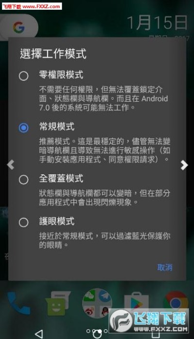 (Android 6.0 权限启用方法:“设置” 应用程序 - “应用程序” - 齿轮图标 - “在其他应用程序上层绘制内容” - “夜间屏幕” - 启用)