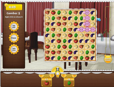 在游戏中每一关进行时,在下方都有你的目标,是每种食物的消除数量,游戏时有时间上的限制为4分钟,相信这对玩家来说戳戳有余。