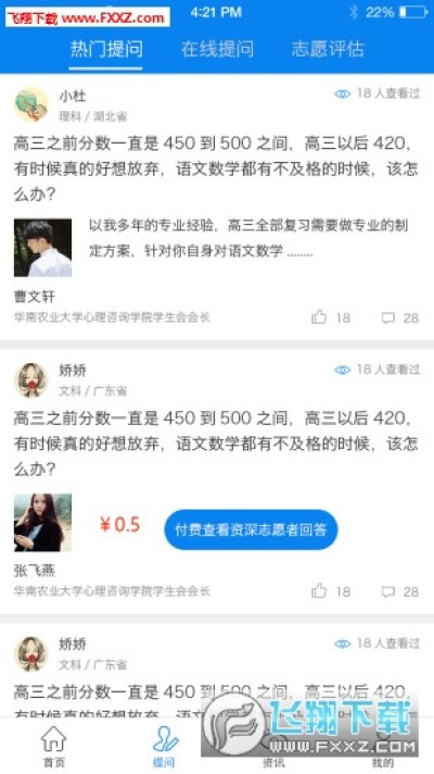 1.在线提问同校师兄师姐;